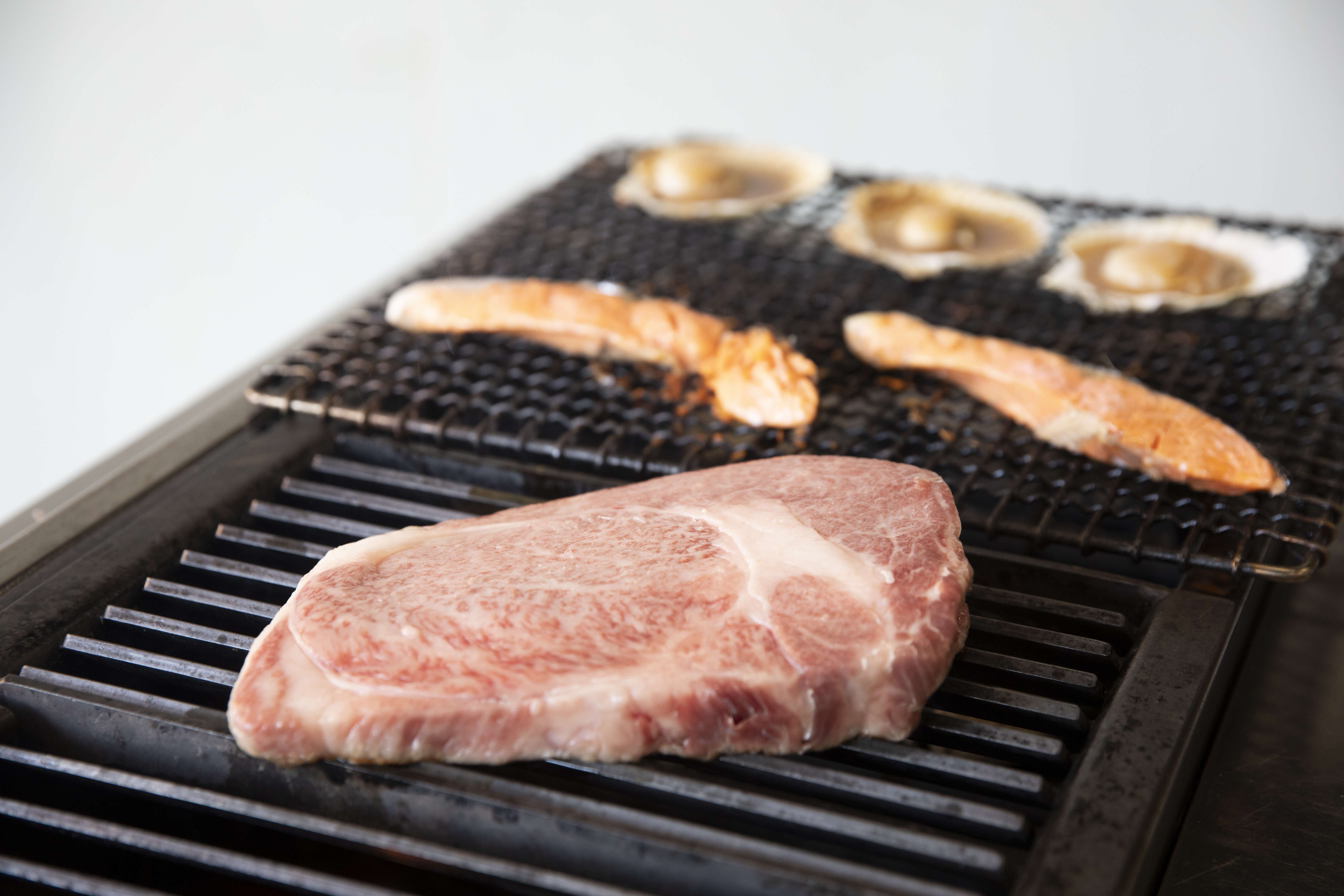 ダイナミックな肉料理から、繊細な和風料理まで、料理人が自在にコントロールできます。天然炭を併用して炭の燻りを食材に与えることも可能です。